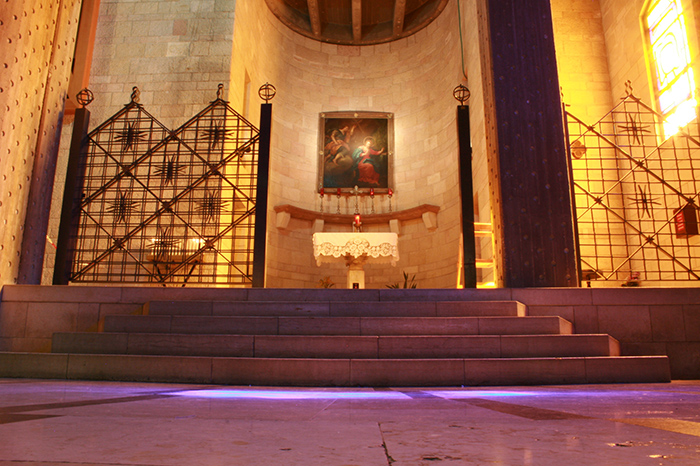 The lower church is the Grotto of the Annunciation, where the announcement to Virgin Mary by Archangel Gabriel has occurred.