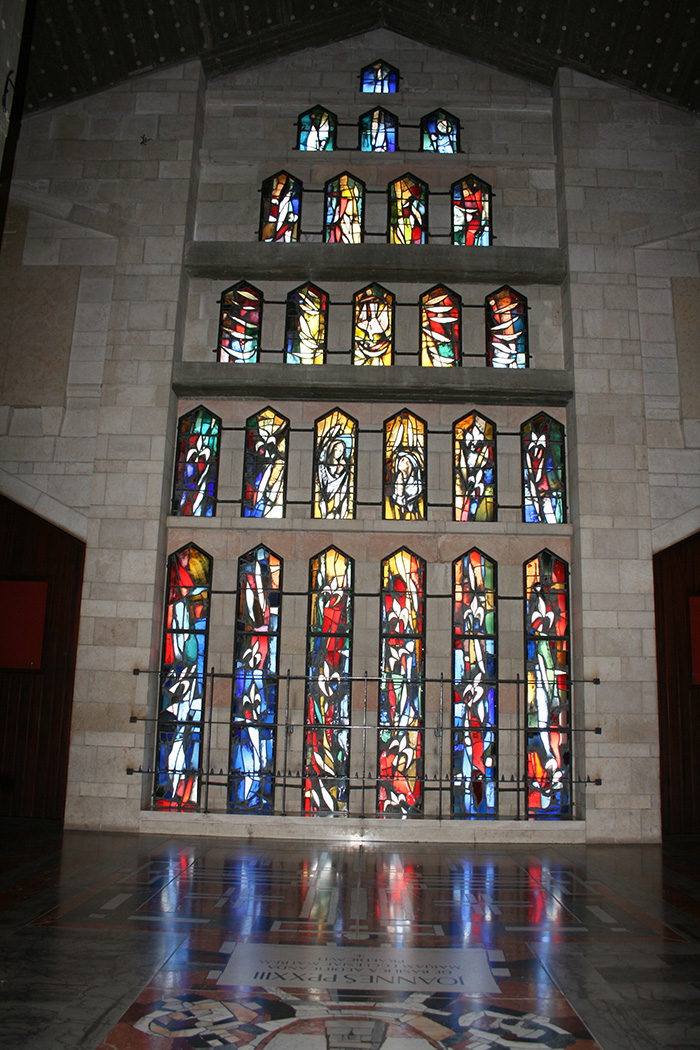 The upper church is decorated with mosaics of the Virgin Mary donated by communities from around the world and is topped with a 40-meters-high-dome with the shape of a lily.